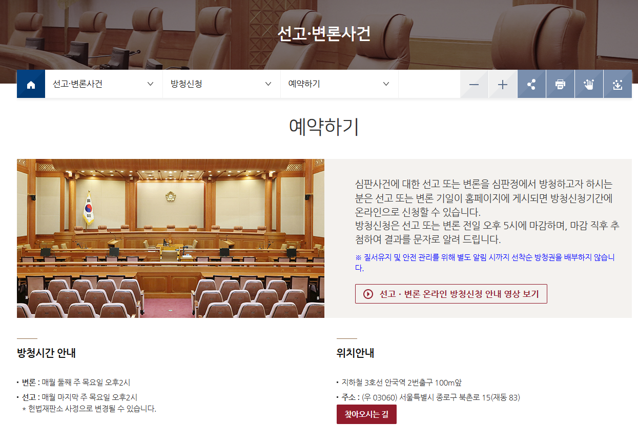 4월 4일 대통령 탄핵 선고 방청을 원하시는 분은 아래 사이트에 방문하셔서